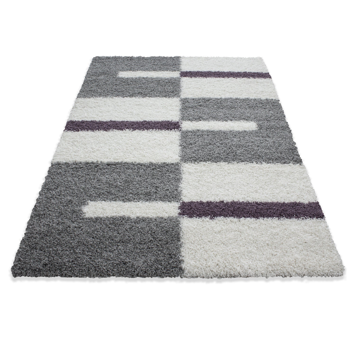 HINGUCKER: Hochflor Teppich und Kariertes Design für z.B. Schlafzimmer, Wohnzimmer, Wohnbereich, Wintergarten, Hotelzimmer, Gästezimmer, Kellerraum, Abstellraum
